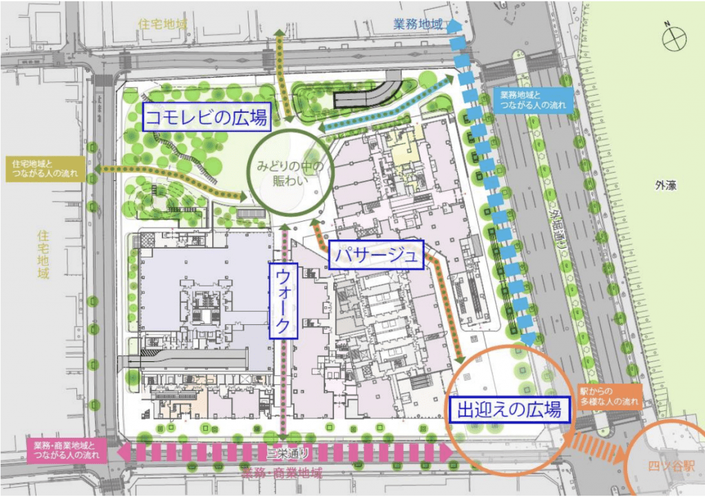 Quá trình quy hoạch và thiết kế một công trình tại Tokyo, đặc biệt là các công trình thương mại, công cộng thường có sự tham gia của rất nhiều bên: thiết kế, thi công, chủ đầu tư, chính quyền và cả người dân etc… nên không có gì lạ khi nhiều công trình dù là của tư nhân vẫn có những lối đi đâm xuyên qua công trình để kết nối đến các con phố nằm ở mặt sau.