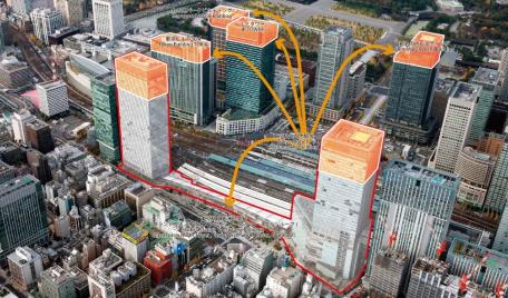 Lần đầu tiên đất nhân tạo trên không (人工地盤) được hiện thực hóa và nó đã góp phần thay đổi đáng kể không chỉ kiến trúc mà bộ mặt đô thị Nhật Bản sau này.