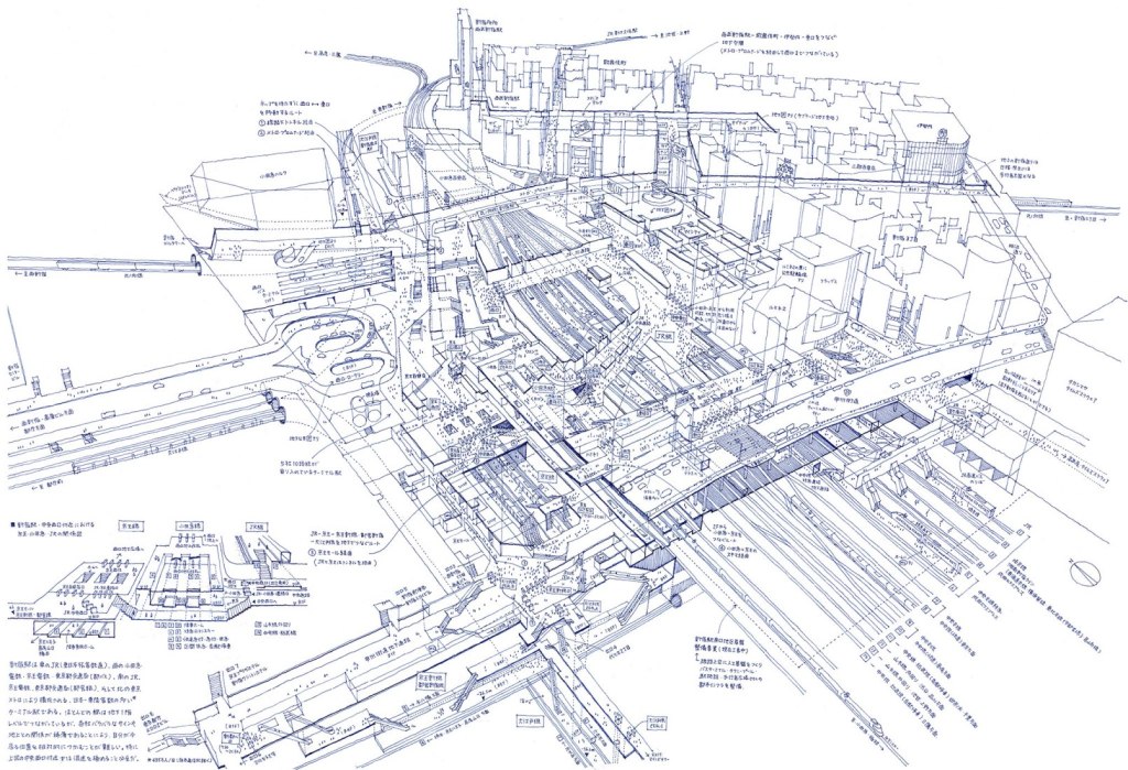 Nhà ga là không gian đời sống quan trọng bậc nhất của người dân Tokyo, khi có tới 66% dân số sử dụng tàu điện để đi làm và đi học, trong khi phương tiện cá nhân là ôtô chỉ chiếm 3%, lẽ dĩ nhiên không gian phụ trợ và khu vực xung quanh các nhà ga dù là ngầm hay trên mặt đất cũng trở nên vô cùng quan trọng.