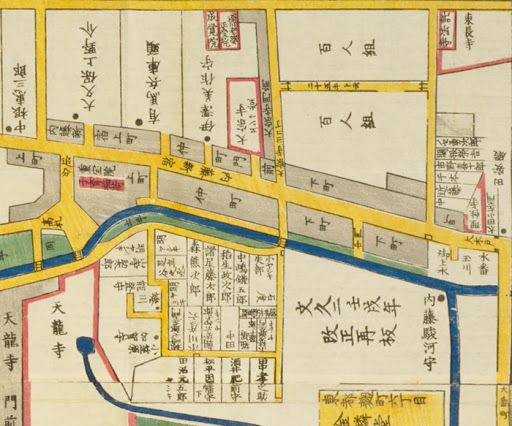 Trước hết ta hãy nhìn vào bản đồ cổ thời Edo và một bản đồ cùng thời kỳ tại Châu Âu để hiểu nguồn gốc hình thành và tư duy trong không gian đô thị của người Nhật
