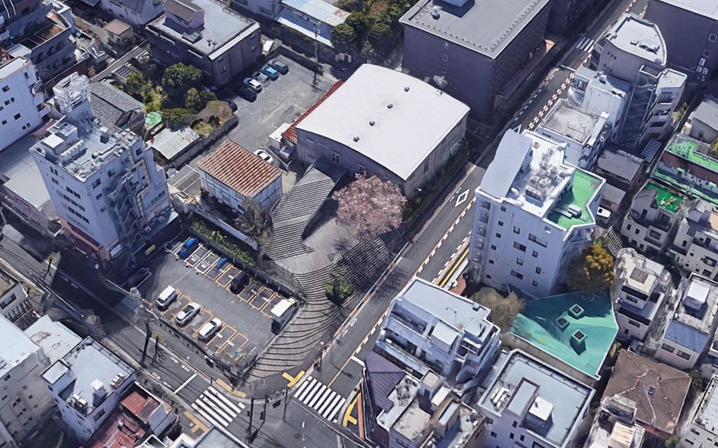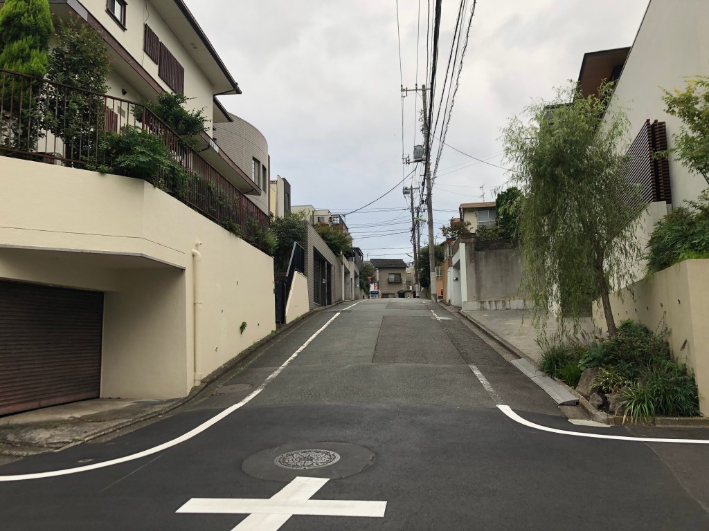 Một con đường dốc bình thường như mọi con đường ở phía Tây Tokyo, các công trình được điều chỉnh để phù hợp với cao độ của con dốc dẫn đến trường hợp cửa tầng 1 và lối tầng 2 chỉ cách nhau vài bước chân