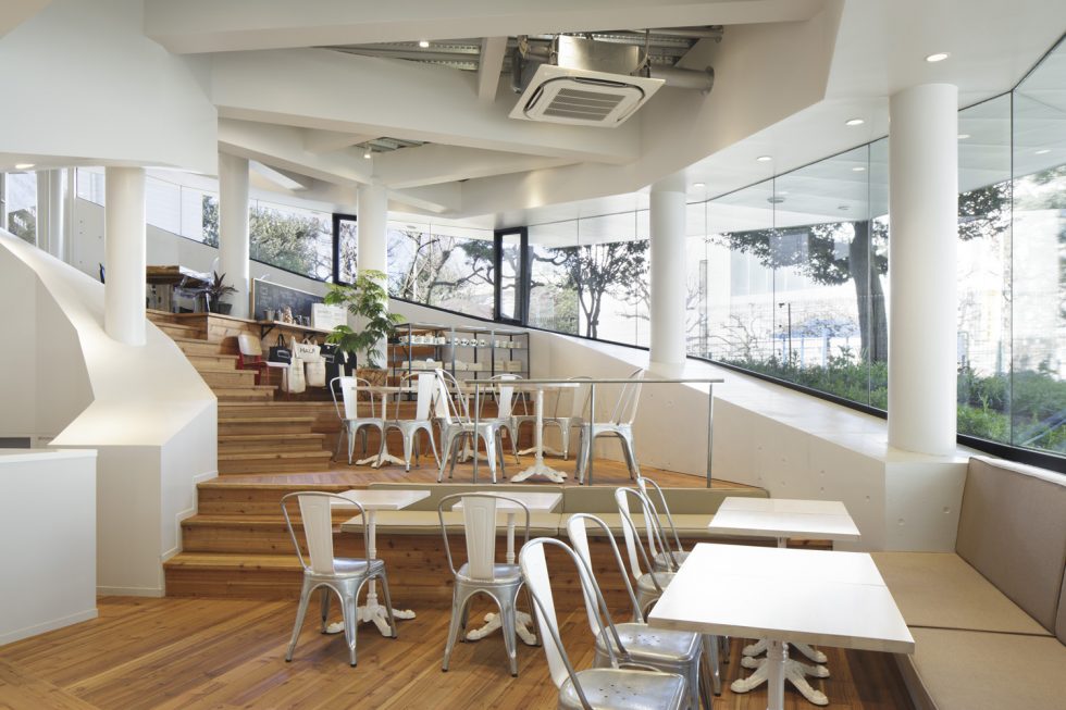 Monkey cafe D.K.Y – Nakamura Hiroshi ở Sarugakucho lại là một công trình khác sử dụng bậc thang làm concept Tuy vậy, công trình chỉ là một sự tái tạo tương đối giả tạo, vì những bậc thang này không có nhiều sự liên hệ với hiện trạng khu đất, thay vì sử dụng sự phân tầng của các bậc cầu thang để tạo ra các không gian nghỉ ngơi như 9h, quán chỉ đơn thuần là đặt một bộ bàn ghế lên mỗi bậc chiếu nghỉ khiến cho không gian trở nên khá vụn vặt