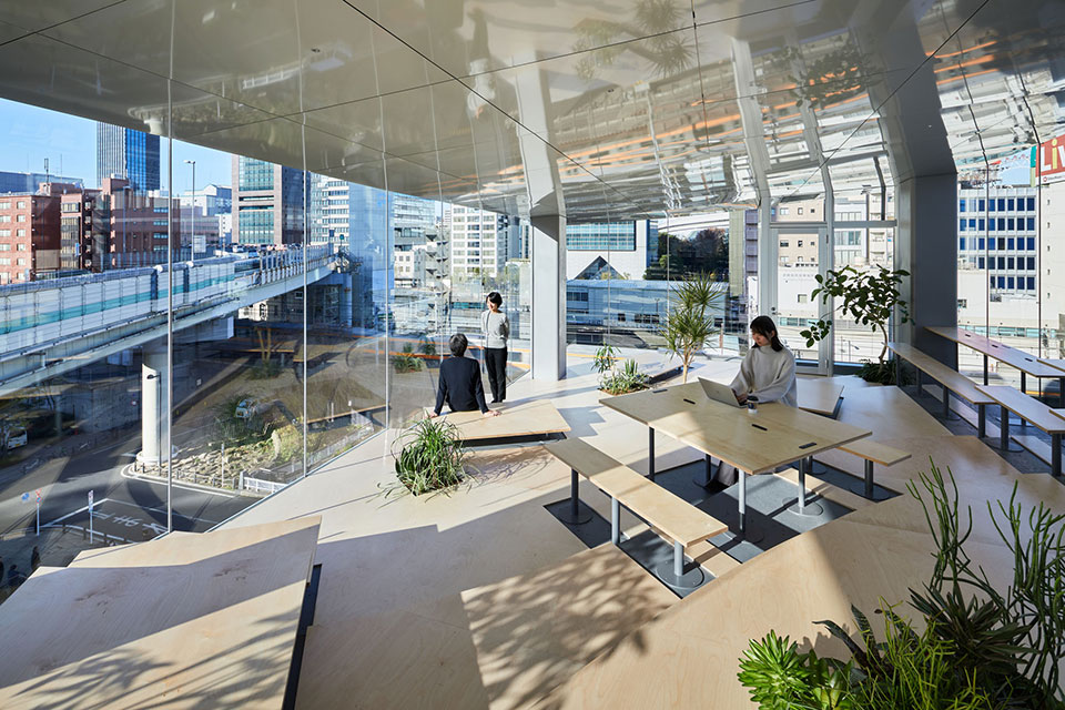 Không gian Lounge ở tầng 6 đã được dành làm “ruộng bậc thang” mở hướng view về phía sông Kanda