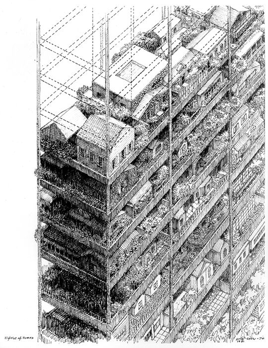 Giả như, nếu công trình đặt yếu tố kinh tế lên hàng đầu, có thể nó sẽ được thiết kế phân ra thành nhiều căn hộ nhỏ hơn, có thể có sân trong lấy sáng và mặt đứng kiên cố, đảm bảo sự riêng tư hơn, nhưng như vậy cũng đồng nghĩa với việc mất đi những khoảng không gian xanh cống hiến cho đô thị và cho công trình. Vả lại, 3 căn hộ với giá 20man/tháng với 5 căn hộ với giá 12man/tháng có lẽ cũng chẳng khác nhau là bao.