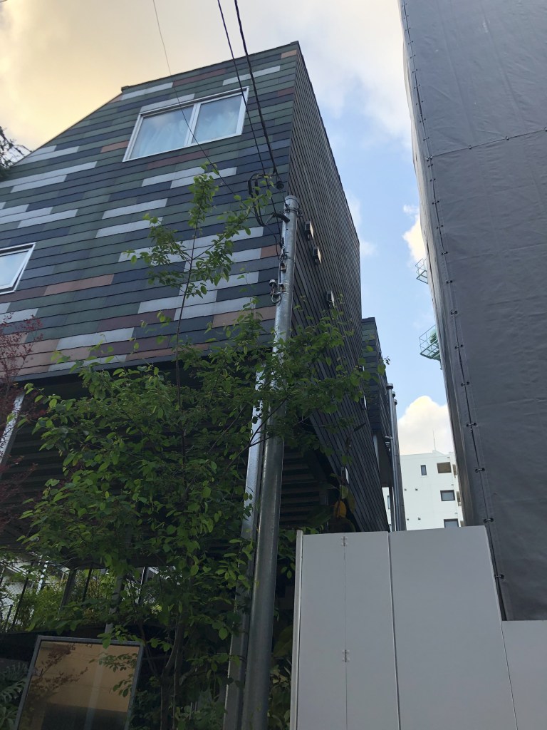 Khác với kiến trúc mặt tiền (1 diện) tại VN, công trình tại Nhật hẩu hết luôn tồn tại ở dạng lập thể (4 diện) nên các thể loại ống thiết bị, cục nóng điều hòa luôn được giấu một cách dễ dàng