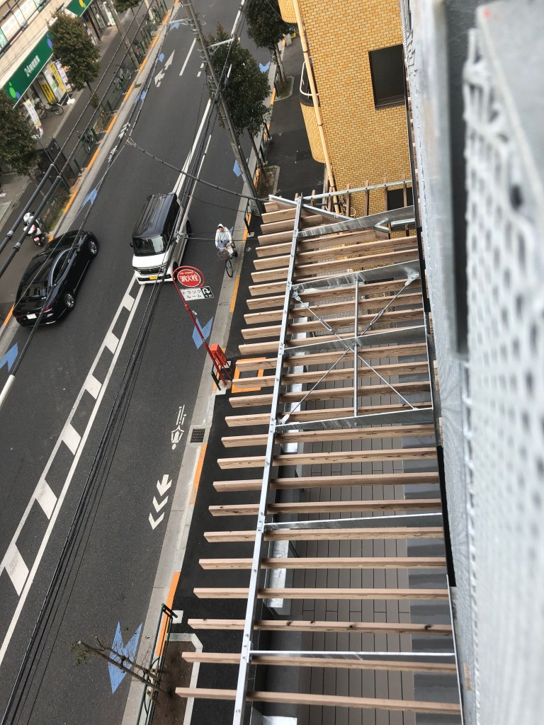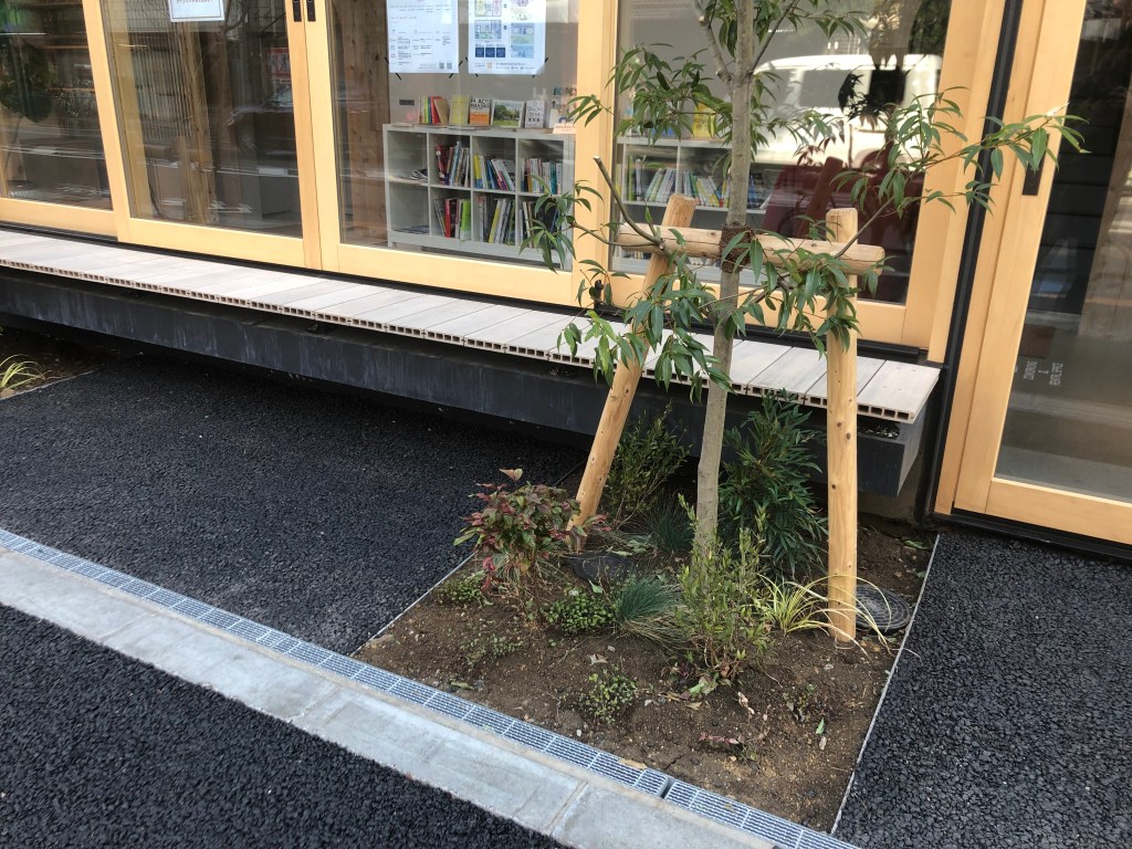Ở phần ngoại cảnh công trình, quán cafe ở tầng 1 được bố trí hệ ghế ở bên ngoài, nhưng phần cạnh nhỏ của các tấm gỗ thì ở trạng thái lỗ rỗng, làm tăng nguy cơ đọng nước, giảm độ bền của tấm gỗ và làm bẩn quần áo của khách (thường thì phần cạnh nhỏ (小口) này luôn được để tâm xử lý trong các công trình tại Nhật vì đôi khi nó lại là phần gây chú ý nhất khi nhìn vào tổng thể)